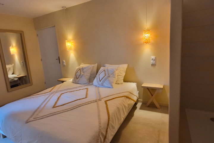 The 2 bedrooms have access to your private terrace, where a relaxation area and its jacuzzi await you (the development is in progress and the photos will be posted online later)